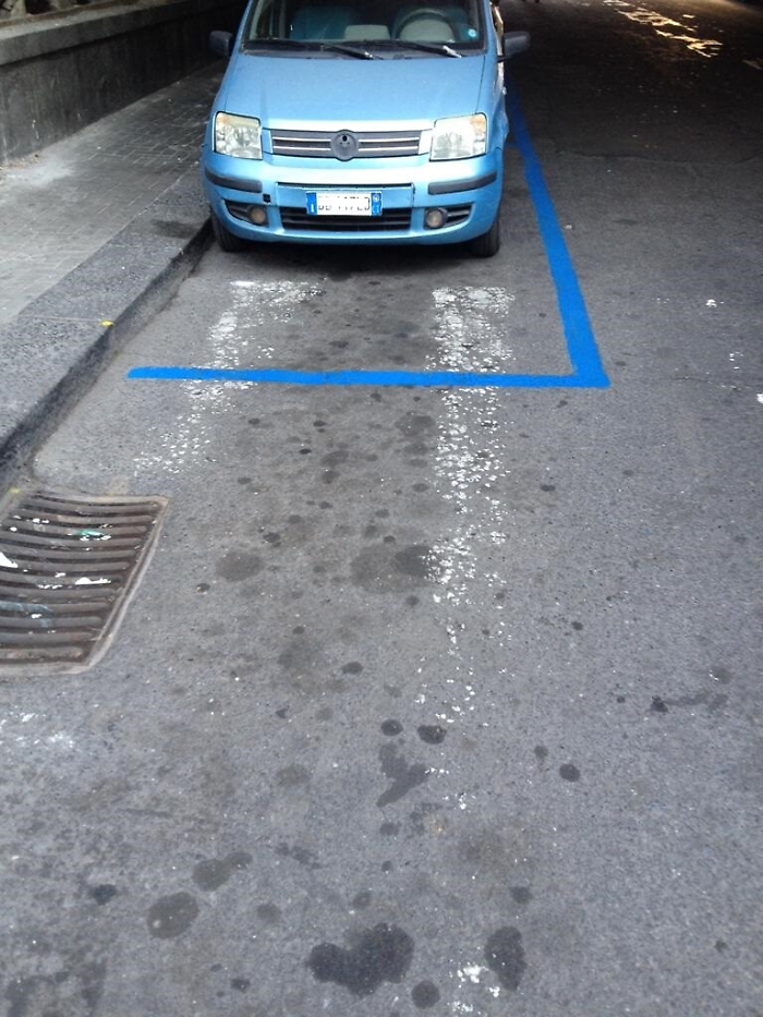 Via Sant'Euplio Catania. Strisce blu su strisce pedonali sbiadite. Ma il codice della strada lo prevede?? Chi è in torto? Sostare o il comune che non rinnova le strisce pedonali?? Sbagliano tutti ma è il cittadino che paga.