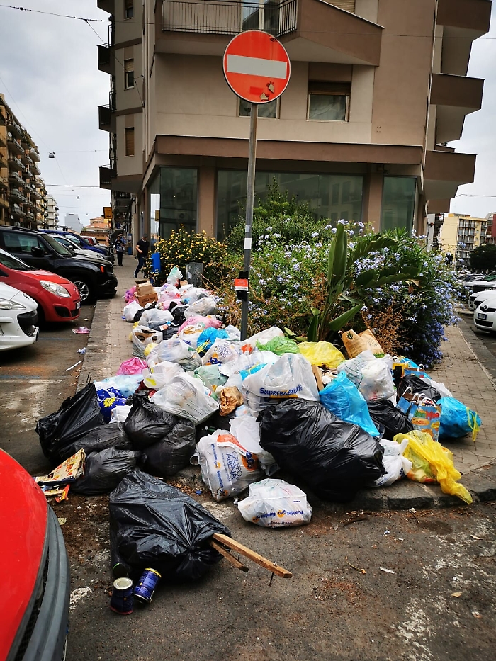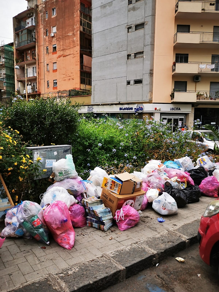 Catania invasa dall'immondizia: Via P. Nicola angolo via G. Leopardi