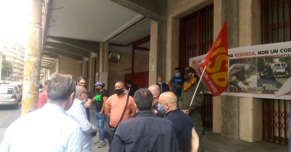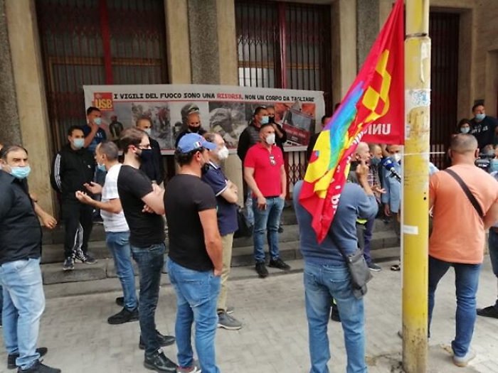 l'USB Vigili del fuoco Catania ha indetto lo sciopero provinciale, che si è materializzato stamattina con un partecipato presidio davanti alla sede del Comando provinciale di via Cesare Beccaria. Il presidio di è trasformato anche in una conferenza stampa , considerata la presenza di giornaliste e giornaliste della stampa televisiva, radiofonica e cartacea. Carmelo Barbagallo, coordinatore regionale di USB Vvf Sicilia ed altri Vigili del fuoco hanno spiegato le ragioni della protesta, che sintetizziamo con questa lunga lista di richieste e denunce: " Diritti; Tutela; Assunzioni; Riclassificazione delle obsolete sedi; Tamponi e Test sierologici in maniera costante; Fondi per le sedi di servizio; DPI per tutti; Pulizie e Danificazione delle sedi; Parametri INAIL; Spettanze Oasi del Simeto , anno 2018/19, e Boschive, anno 2019". Assieme ai Vigili del fuoco anche una delegazione della Federazione Del Sociale USB Catania.