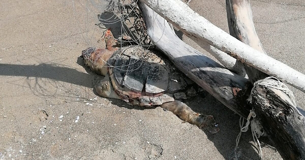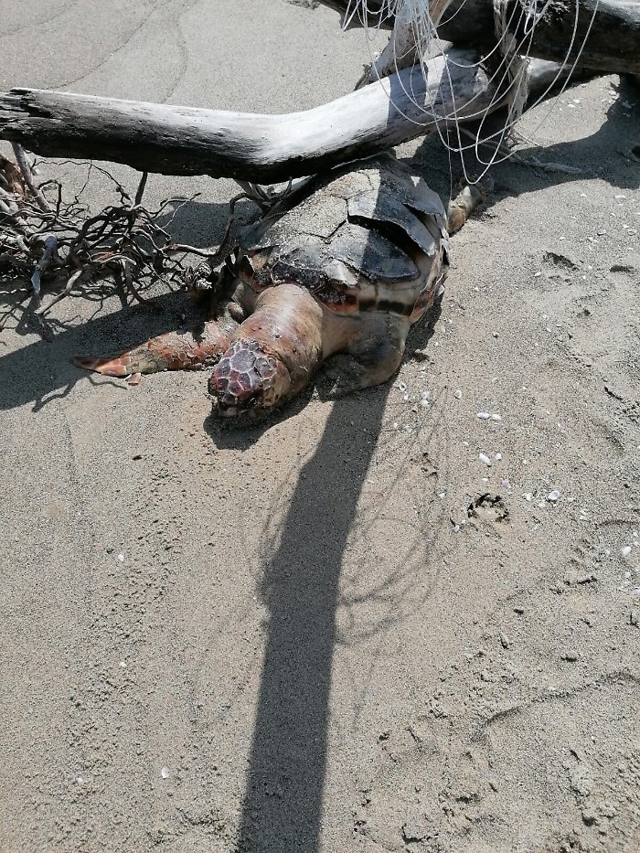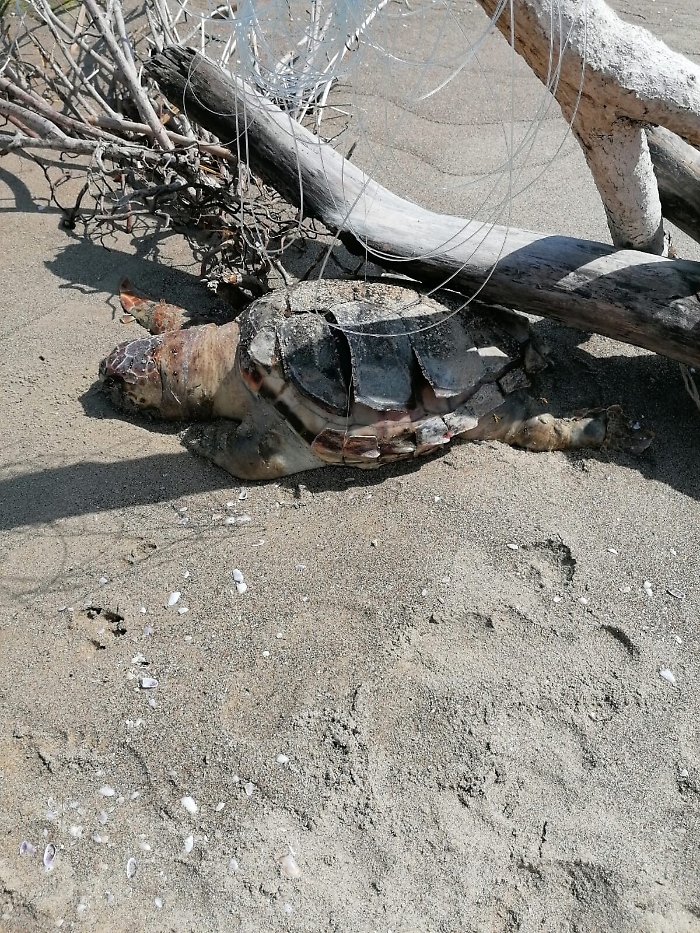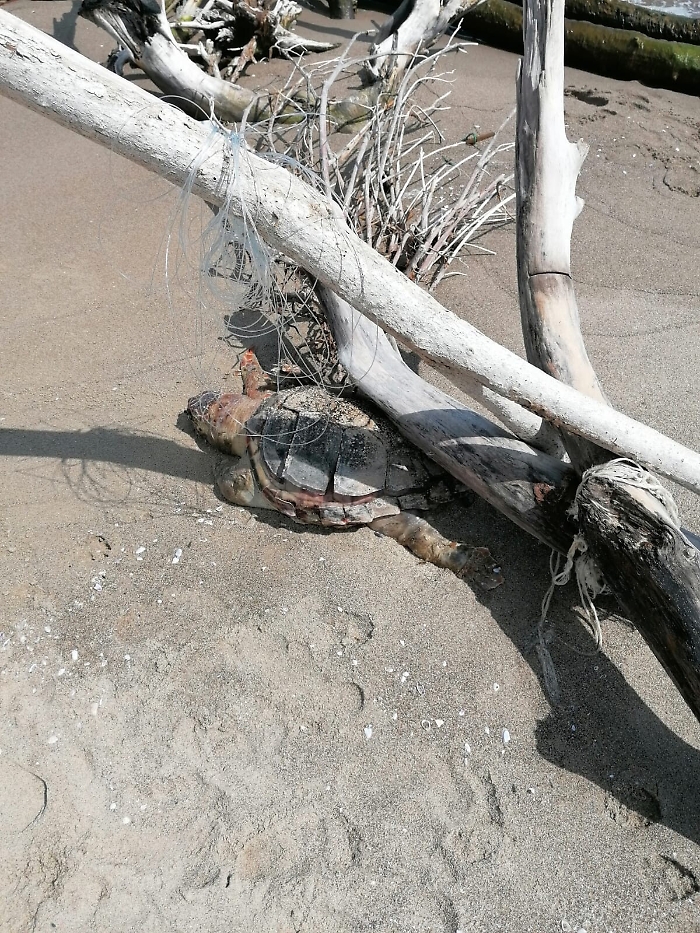 Tartaruga Caretta Caretta morta, incastrata tra i detriti nei pressi foce San Leonardo - Agnone bagni.