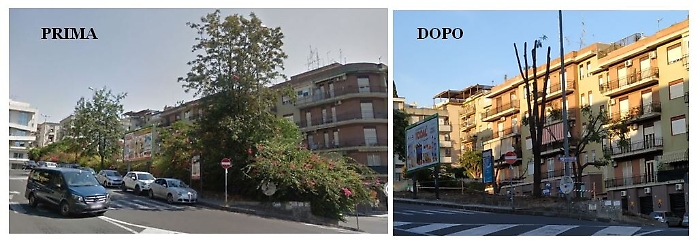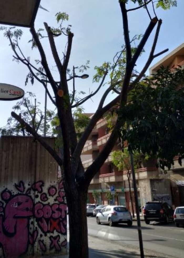 Catania, quartiere Borgo-Sanzio: barbara capitozzatura degli alberi