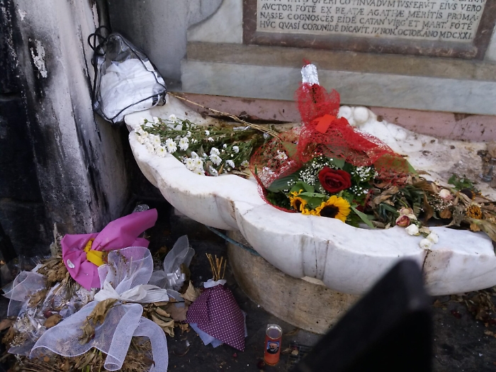 L'altarino di Sant'Agata di via Dusmet è abbandonato da mesi, i rifiuti sono sparsi al suolo. Non credo che la Santa si meriti questo stato di abbandono.