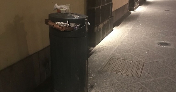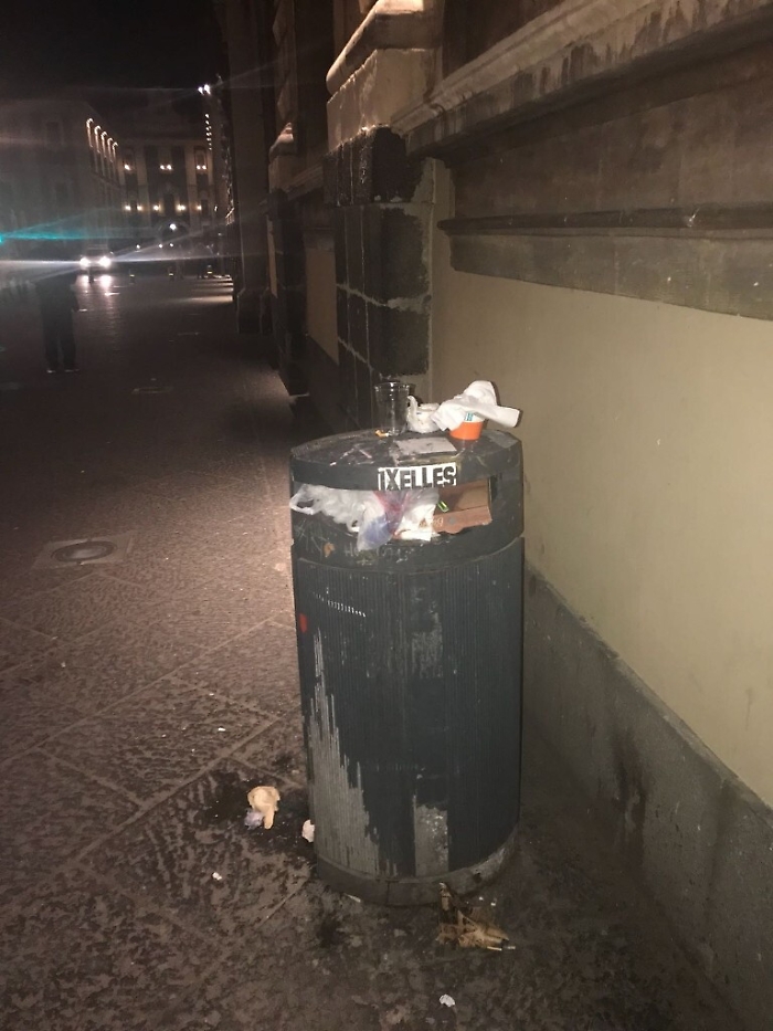 Catania - Via Etnea Palazzo del Comune ore 1,15: nemmeno qui la pulizia è garantita. Almeno dentro sarà pulito?