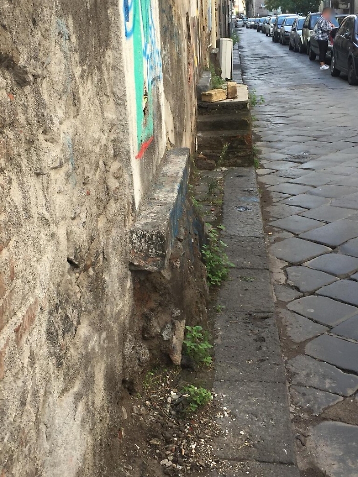 Caseggiato abbandonato al centro di Catania, posto tra via Grotte Bianche e Via Sisto. L’edificio abbandonato è fonte di numerosi problemi. Sulla via Grotte Bianche, favorisce ed è causa di una discarica a cielo aperto. Sulla via Sisto, impedisce il traffico pedonale, dato che il marciapiede è interrotto dalle rovine di vecchi gradini. Chi se ne deve occupare? Può il Comune di Catania consentire che al centro si lasci al degrado e ai topi uno spazio così grande?
