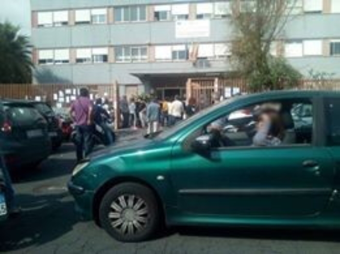 Ogni sacrosanto giorno davanti la scuola media Majorana.