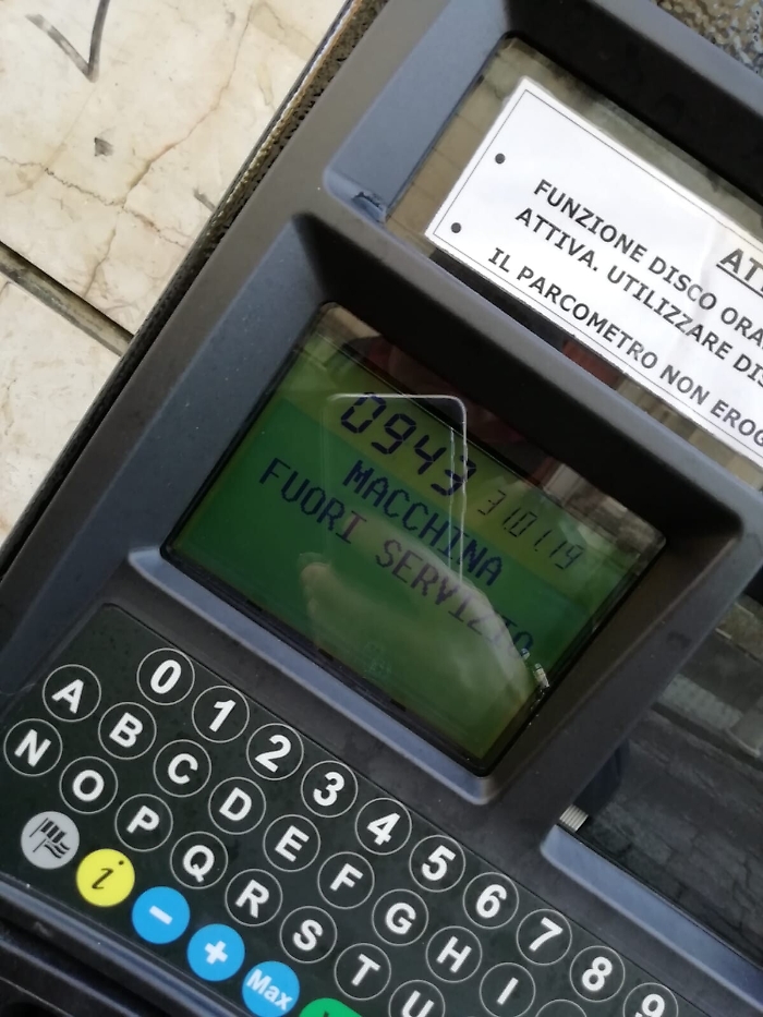Enna, sostituito parchimetro con un nuovo modello... Sempre fuori servizio. Ora finalmente i vigili possono fare le multe.