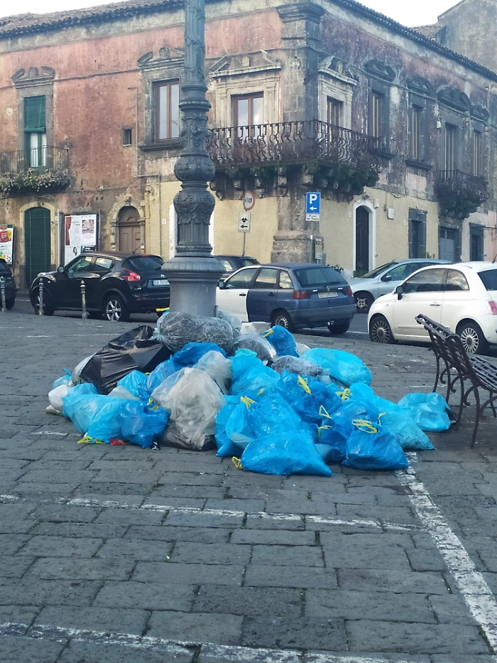Pedara, sciopero netturbini: tra i sacchi topi e vermi