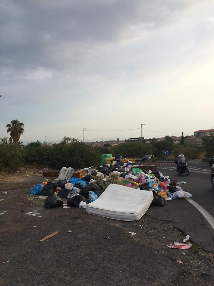 Catania, San Nullo: Viale Benedetto Croce cosparso di rifiuti