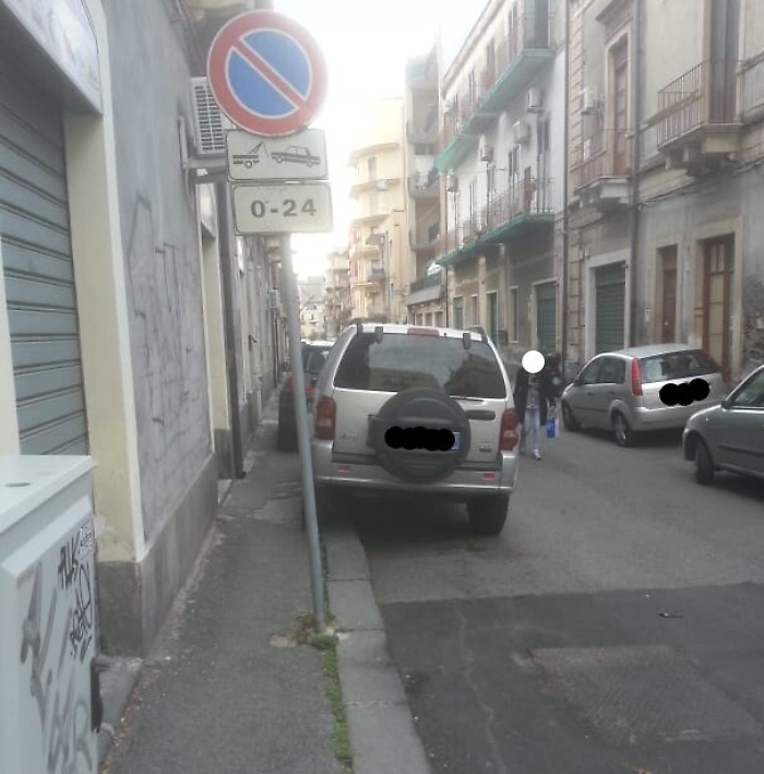 Catania, ci troviamo in via Alfonzetti, zona piazza Jolanda e guardate le macchine come sostano...