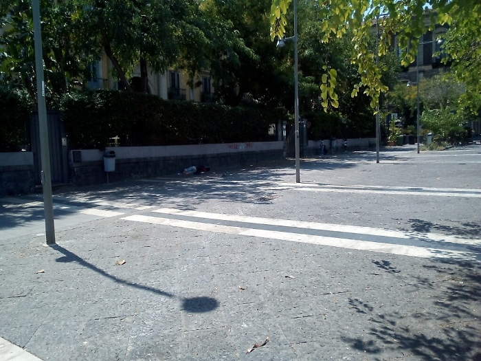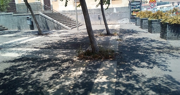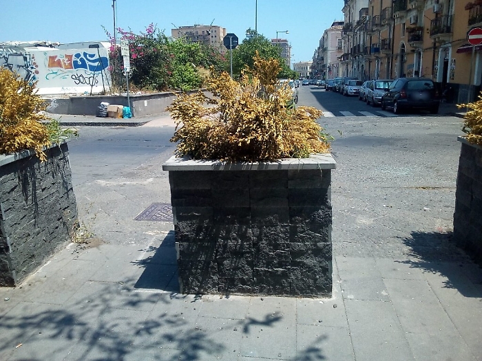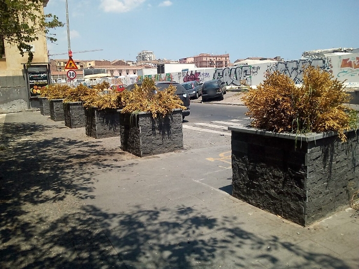 Piazza Falcone ex piazza Cappellini piena di erbacce, le piante mai annaffiate. E' stata inaugurata da poco e già è in queste condizioni.