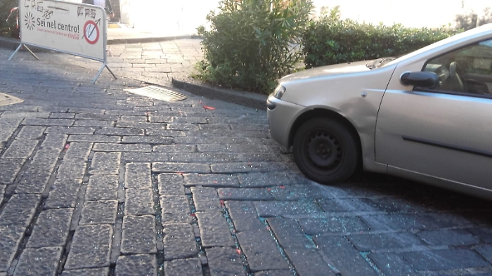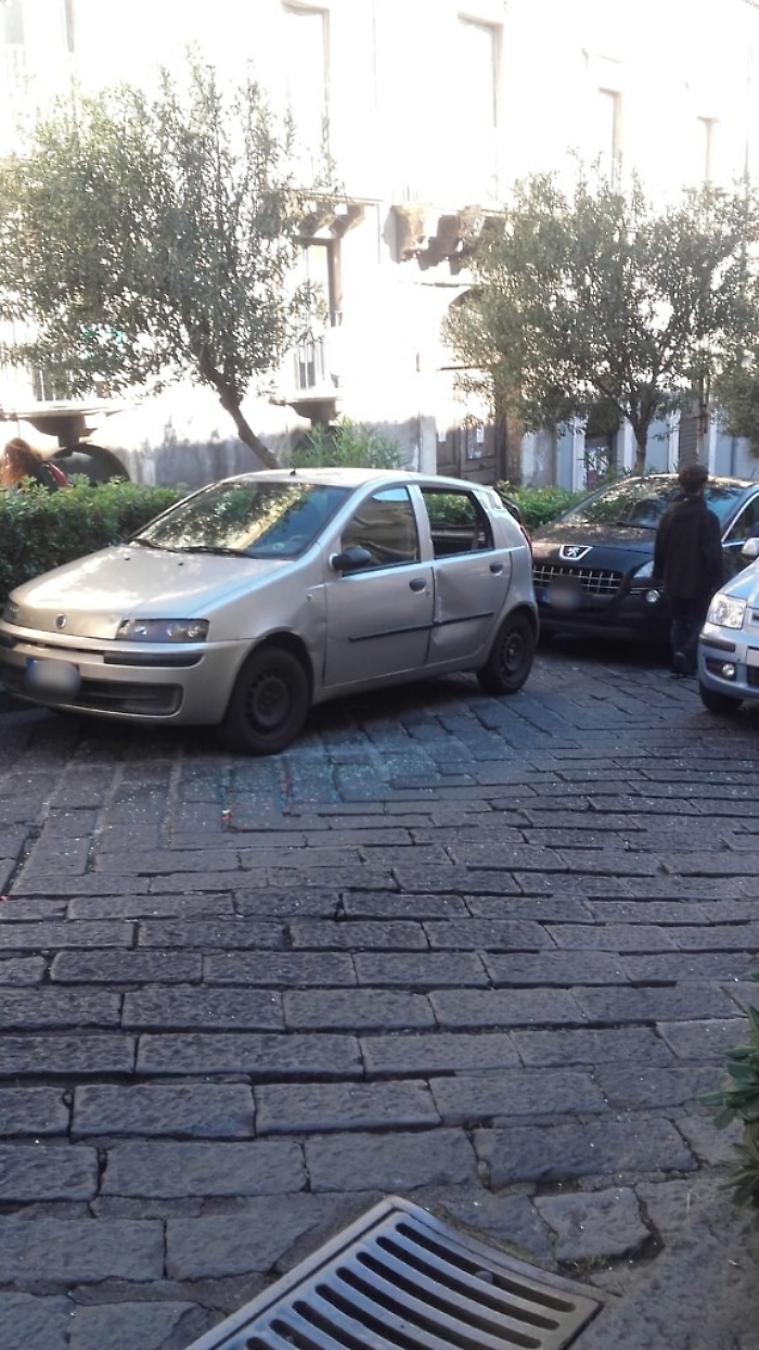 Questa è una macchina parcheggiata in via di Sangiuliano, nel tratto tra via Manzoni e via Crociferi, in zona rimozione, è stata agganciata e massacrata da un camion che transitava sulla salita, immaginate se ci fosse stato un motorino o qualcuno nella macchina, ci sarebbe scappato il morto, sono secoli che noi residenti in quel tratto sollecitiamo il comune affinché rimuova costantemente le auto, noi spesso non possiamo entrare nel nostro portone perché ci vengono parcheggiate le auto nel passo carrabile regolarmente autorizzato e pagato, siamo sempre alle solite, "Aspettiamo il morto"? " Facciamo rispettare la zona rimozione, facciamo rispettare le leggi. E' una cosa molto difficile?