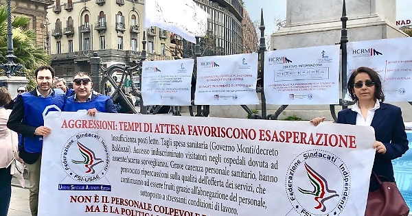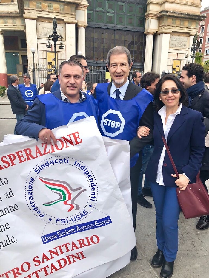Palermo - Grande manifestazione contro le aggressioni al personale sanitario, infermieri, medici, ecc. Coniglio Fsi-Usae: “Dopo anni di denunce abbiamo svegliato la politica”. In solidarietà in piazza: Presidente della Regione Nello Musumeci, Assessore regionale della Salute Ruggero Razza, deputati regionali e nazionali, associazioni di psicologi e fisioterapisti, il sindaco di Palermo Leoluca Orlando, sindacati, ordini professionali, direttori generali, autorità, ecc.