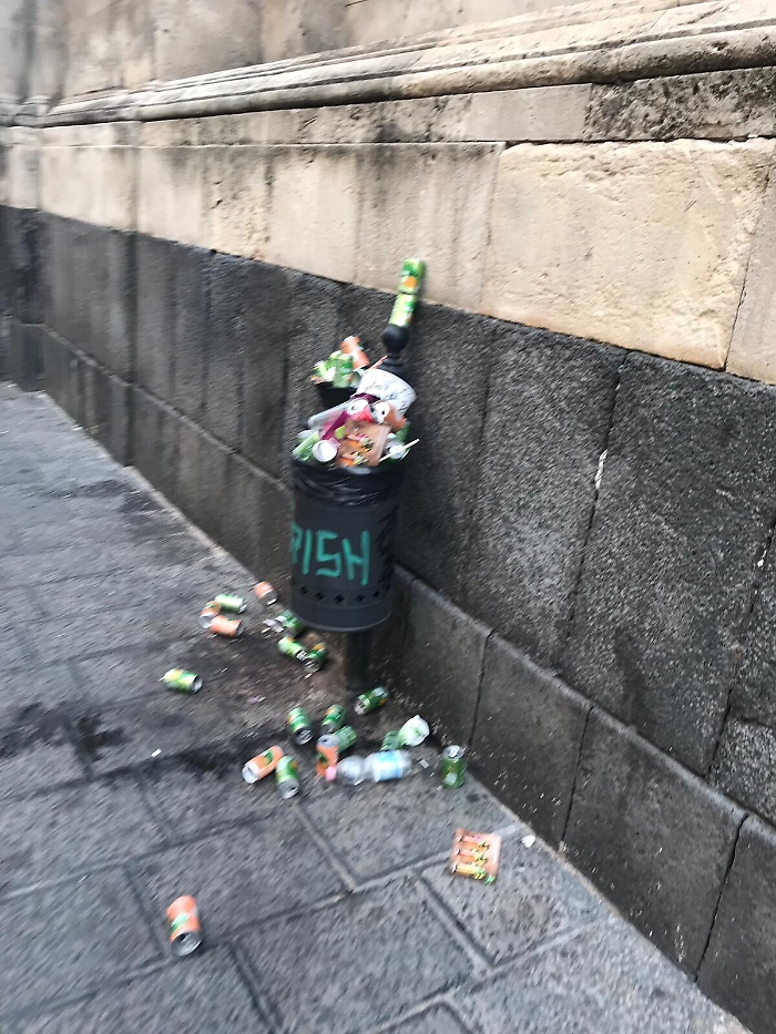 Catania: in via Etnea cestini pieni e rifiuti a terra