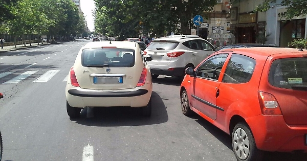 Parcheggio in tripla fila in viale Vittorio Veneto a Catania