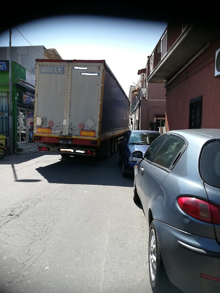 Catania. Divieto accesso mezzi pesanti ignorato in via San G. la Rena