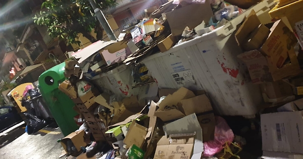 Non so a che numero di segnalazione sono arrivato in merito alla spazzatura buttata da un esercizio commerciale. In quanto dagli scatoli si evince che si tratta di immondizia gettata dopo aver riempito gli scaffali per le feste del supermercato. Mi domando: il comune non ha degli ispettori che girano? E noi paghiamo per vigilare sul recupero della spazzatura! E' giusto che la collettività paghi per il recupero della spazzatura di attività commerciali come supermercati. Sono indignato signor sindaco lei che è giovane come me faccia qualcosa grazie