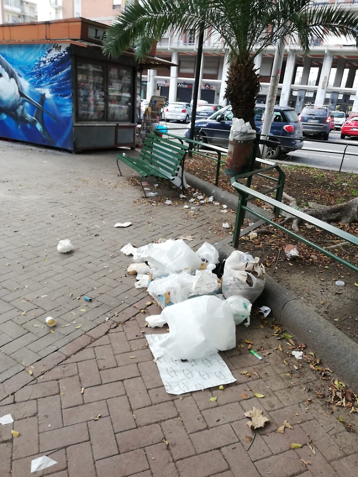 Viale Lainò, tagliate le siepi ma da giorni non si vede nessuno che possa ripulire le aiuole. Piazza Michelangelo oggi....