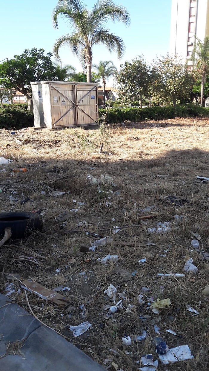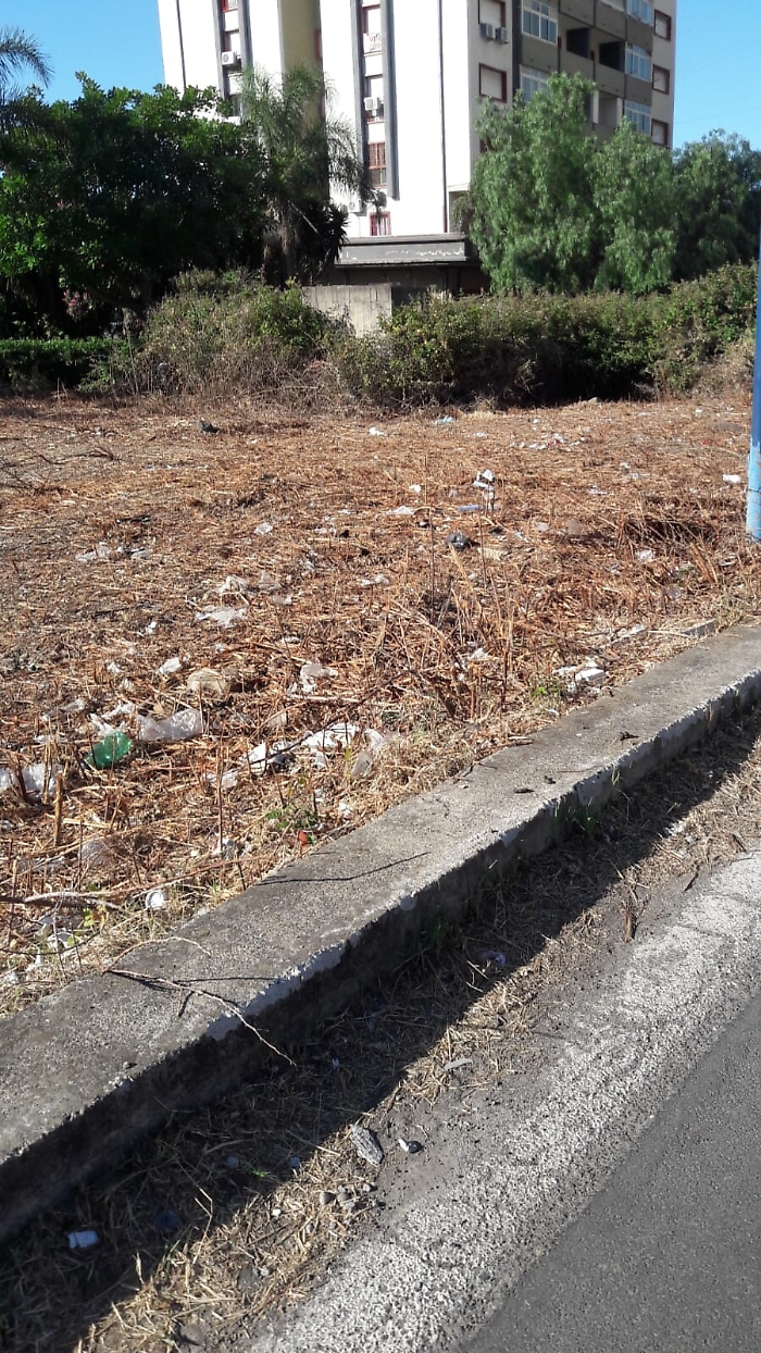 Siamo a Librino all'altezza del civico di viale Librino 6. Questa zona versa nel più totale degrado. Hanno tagliato tutto ma non hanno pulito è soprattutto sanificato, si muore dalla puzza sia di immondizia che di animali morti, si spera che venga pulito tutto.