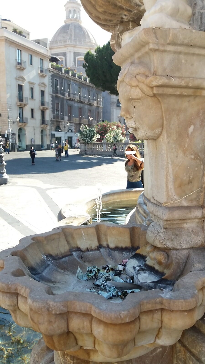 La fontana del Liotro ridotta una sporcizia e anche senza acqua dalle quattro bocche. Addio mia Catania stai affondando