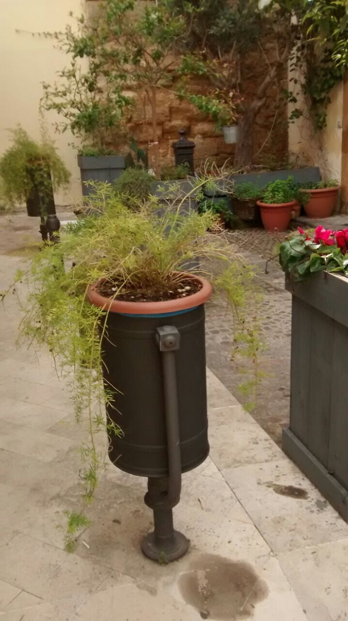 In questi porta rifiuti qualche ristoratore della zona ha introdotto delle piante, ma il comune di Augusta i porta rifiuti li ha acquistati coi soldi dei contribuenti. Siamo sempre in piazza Turati, centro storico di Augusta.