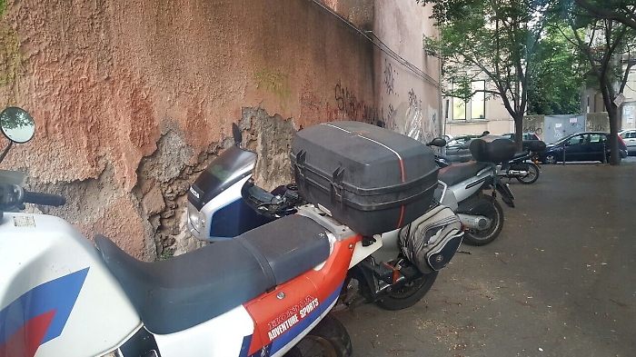 Piazza tra via Scandurra e via Canfora a Catania trasformata non solo in discarica ma anche in parcheggio abusivo di moto.