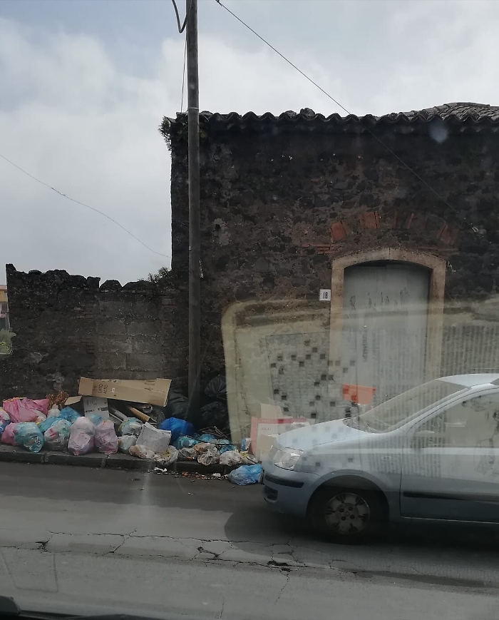 Da 10 giorni Pedara è piena di spazzatura. Ogni porta e portone ha, dinnanzi, cumuli di spazzatura. Per la Santa Pasqua abbiamo ricevuto parenti e amici con questa fetore. I topi fanno festa e sono un pericolo per le persone. Ma ogni anno paghiamo una tassa molto esosa per il non servizio di ritiro e, a volte, hanno chiesto un conguaglio dopo l'approvazione del bilancio. Perché? Il comune si è indebitato per abbellire il centro ma non ha pensato a altre priorità. Le foto mostrano la situazione in Via delle Rimembranze e in Piazza Don Diego.