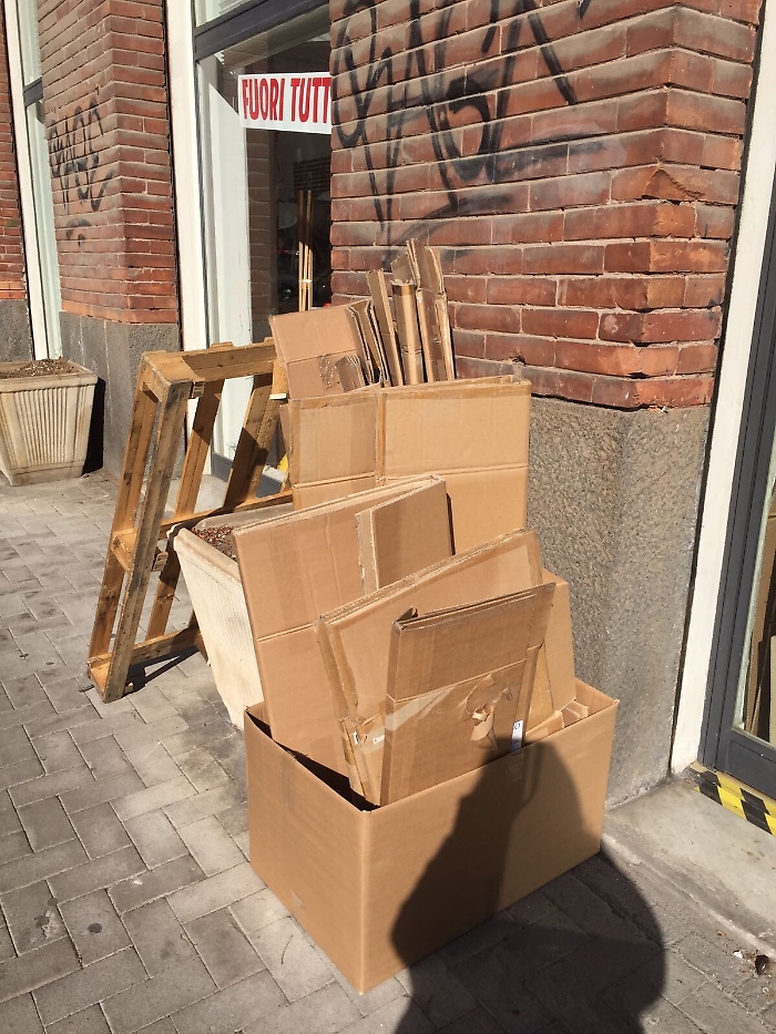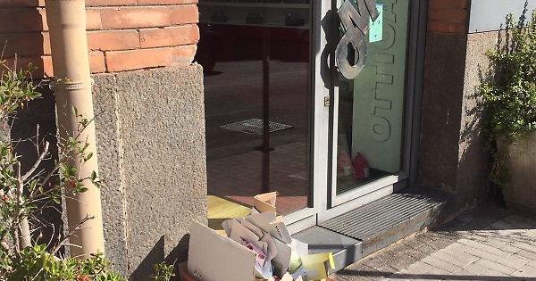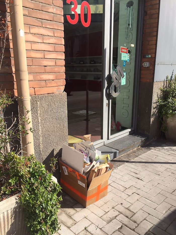 Catania - In Largo Aquileia alle ore 8.20, all'apertura negozi, scatole di cartone e rifiuti da ritirare. È uno schifo!!!!!!
