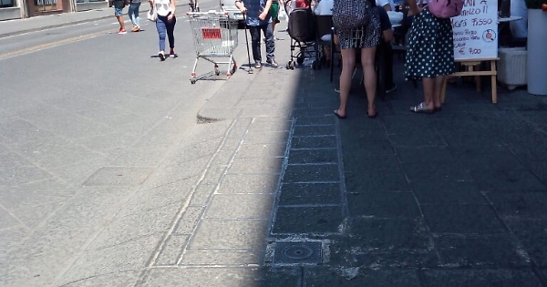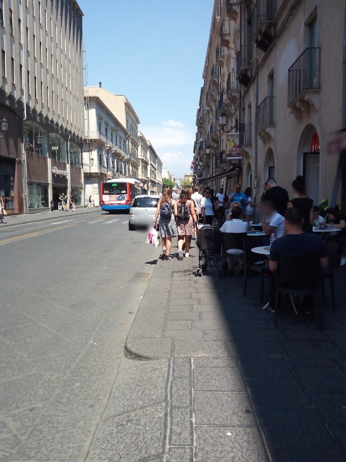 Marciapiede occupato dai tavolini in via Etnea: intransitabile, non solo per i disabili