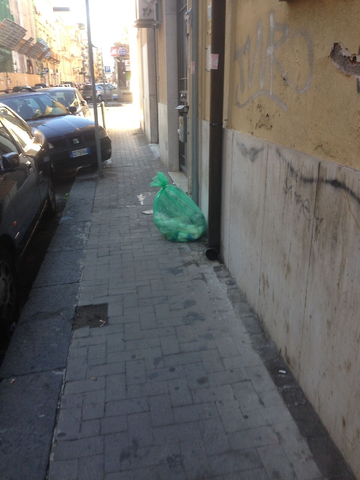 Catania, rifiuti della differenziata lasciati davanti ai portoni in via Canfora