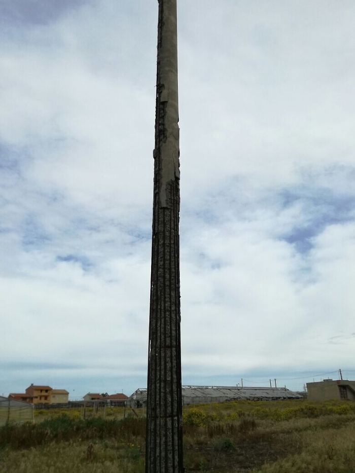 Questo è un palo pericolante che si trova a Marina di Acate. In estate alcune persone passano da qui per andare al mare e rischiano molto.