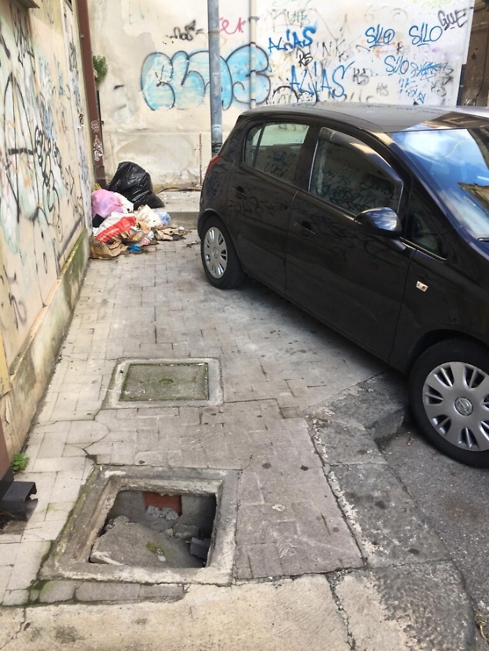 Nonostante le ripetute segnalazioni alla Terza circoscrizione, non si interviene per accettare la richiesta dei residenti di apporre dei paletti parapedonali alla fontana ubicata in Via Sisto, considerato che il marciapiede sul quale si trova è regolarmente occupato da vetture parcheggiate e immondizia abbandonata, quotidianamente ignorata dallo spazzino incaricato della strada.