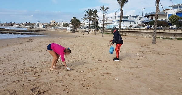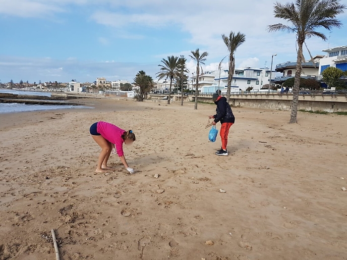 Senso civico a Marina di Ragusa. Due giovani volontari insegnano agli altri le buone maniere ripulendo la spiaggia dai rifiuti lasciati da qualche incivile. Lasciamo pulito il nostro gioiello!