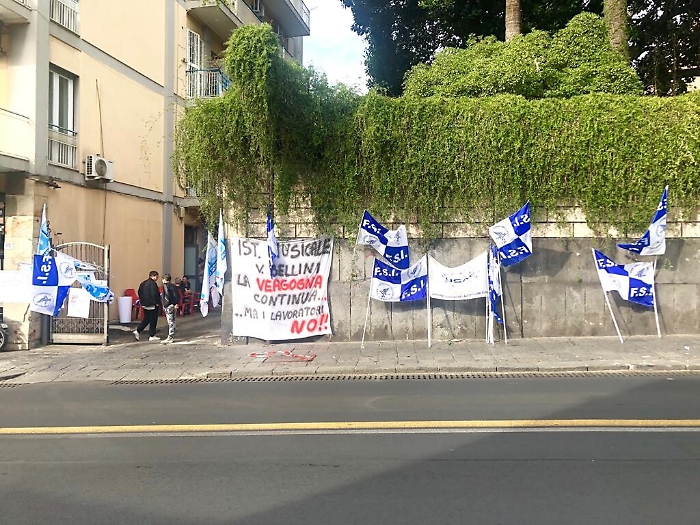 CATANIA 01 OTTOBRE – “Si è svolto questa mattina il presidio di protesta  della Fsi-Usae, Federazione Sindacati Indipendenti, costituente della confederazione Unione Sindacati Indipendenti, sindacato presente in tutti i comparti lavorativi, del pubblico impiego e del privato, contro il licenziamento di 18 dipendenti in servizio presso l’istituto musicale “Bellini” di Catania, con lo scopo di sensibilizzare il Sindaco Salvo Pogliese e le istituzioni competenti” – dichiarano Calogero Coniglio Segretario Regionale e Biagio Cirino Componente di segreteria territoriale di Catania.