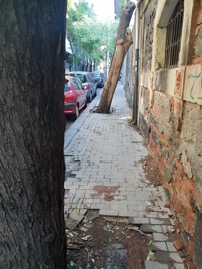 Via Ipogeo, botola stradale in depressione di cm.10 e marciapiedi creano incolumità pubblica di pedoni e motocicli, col rischio di richiedere i danni al Comune, inoltre c'è un albero pericolante, quasi appoggiato alla parete di un rudere presente nel marciapiede. Rappresenta pericolo per l'incolumità pubblica, si richiede lo spianto per evitare danni maggiori.