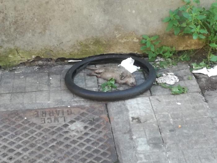 Abito in via bellini zona posta centrale, volevo fare una segnalazione perché in estate sotto casa in 15 giorni ho trovato due topi morti ma oggi ho addirittura trovato un topo che è delle dimensioni di un gatto ed è semplicemente assurdo. In tutte le altre case non c'è spazzatura solo sotto la nostra, visto che con la raccolta differenziata hanno tolto i bidoni la gente si sente in dovere di buttare di tutto ma è normale? I netturbini passano ogni giorno e non spazzano mai la mia zona, ho chiesto e mi hanno risposto che non sono addetti a pulire e io sono d'accordo ma allora inutile pagare la spazzatura se prima o poi mi ritrovo un topo a casa. Questo è l'esemplare di quasi due mesi fa che dopo le piogge si è solidificato sul marciapiede proprio vicino la porta di casa. E questo è ciò che ho trovato poco fa tornando a casa.