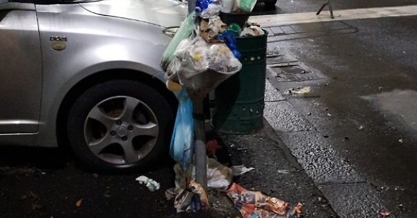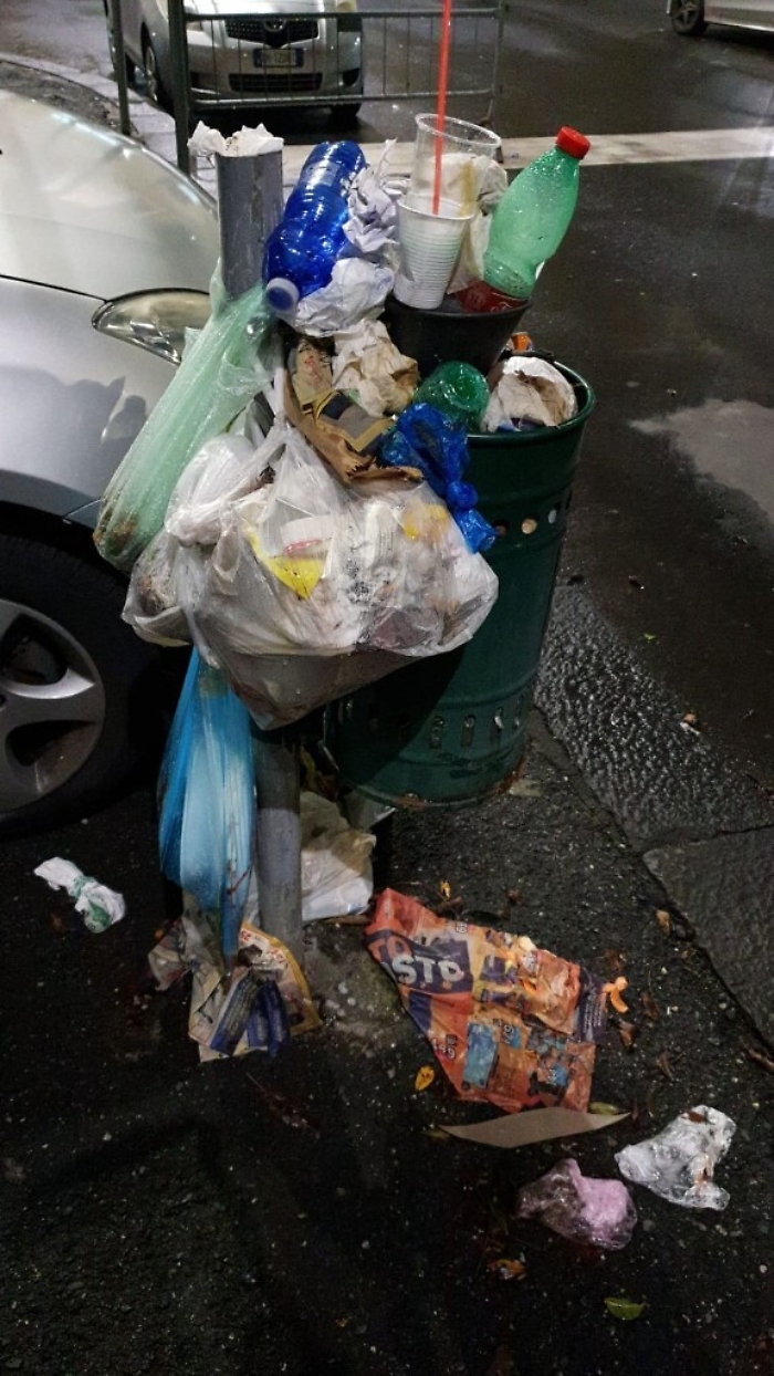 Catania: cestini per i rifiuti stracolmi in Piazza Lanza