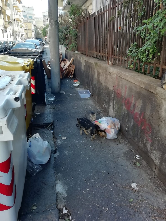 In via Basile di fronte alla scuola Diaz-Manzoni per dare ai bambini un buon insegnamento di corretta differenziata, estrema civiltà, amore per gli animali (compresi blatte e topi).