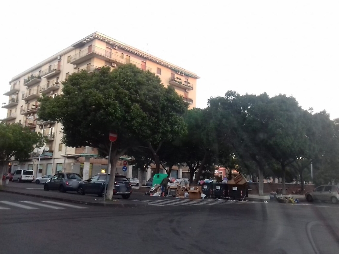 Così attorno alla piazza del Carmelo e vie limitrofe alle ore 07,15 spazzatura dappertutto.