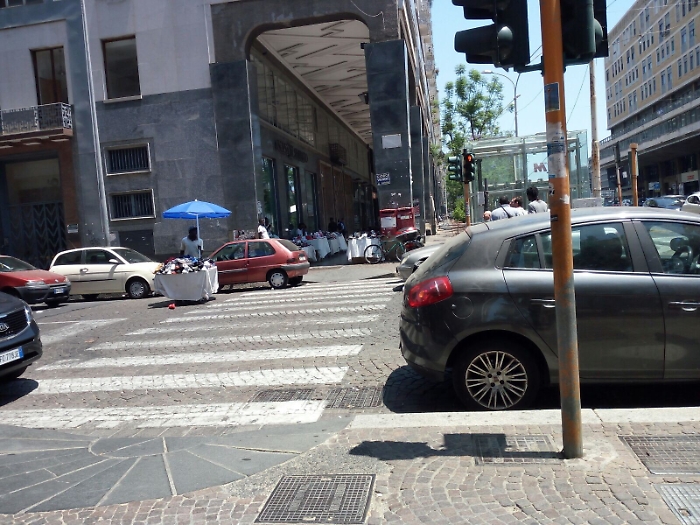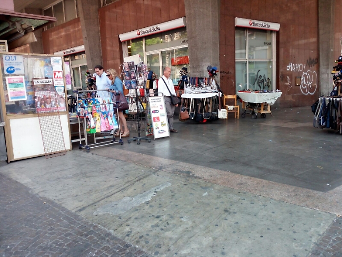 Ci troviamo in corso Sicilia angolo via S. Maria di Betlem, solo in questa città si può vedere questa vergogna, le persone non possono nemmeno camminare, tutto chiuso.