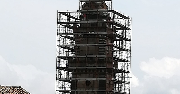 Si parla sempre di evitare le disgrazie sul lavoro, ma non si fa nulla. A Pedara, per ripristinare la cupola della Chiesa Madre, gli operai lavorano su impalcature di legno, a circa 30 metri dal suolo, senza alcuna protezione. Basterebbe un capogiro, un colpo di vento e poi... Così si muore per un piatto di pasta.