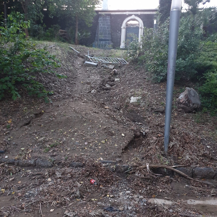 Villa BELLINI: il disastro dopo la tempesta . È bastata una bomba d'acqua per creare ulteriori danni e disagi ai vialetti all'interno della Villa comunale.