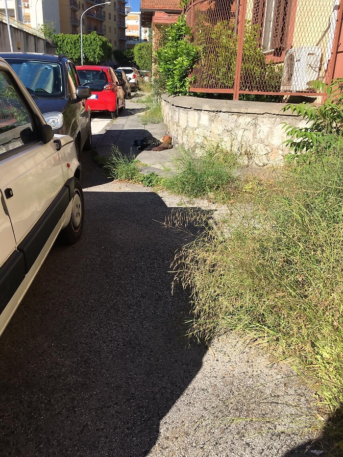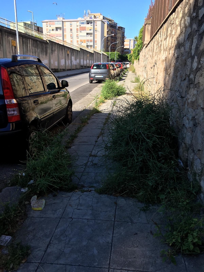 Palermo: marciapiede di Via Dicillo invaso da erbacce e rifiuti