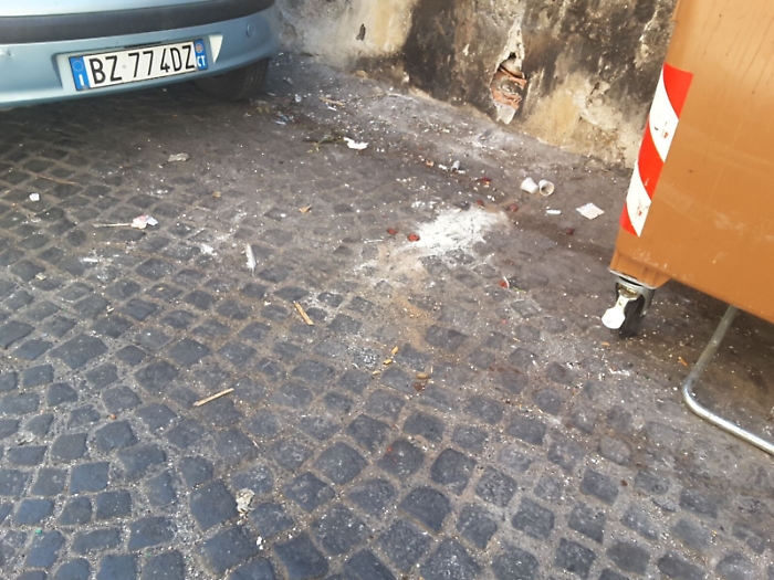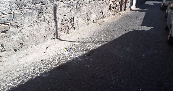 All'angolo tra via Alaimo e via Reitano si cerca lo spazzino