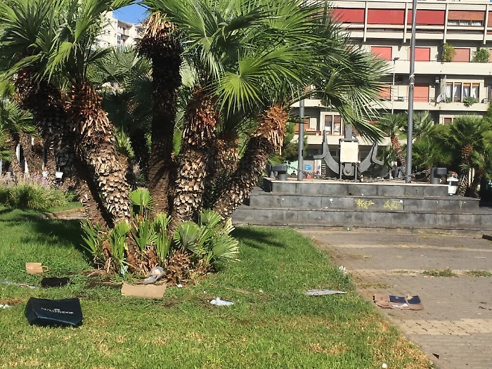 Catania, piazzale Cannavò in stato di abbandono: parcheggio di giorno e bivacco di notte