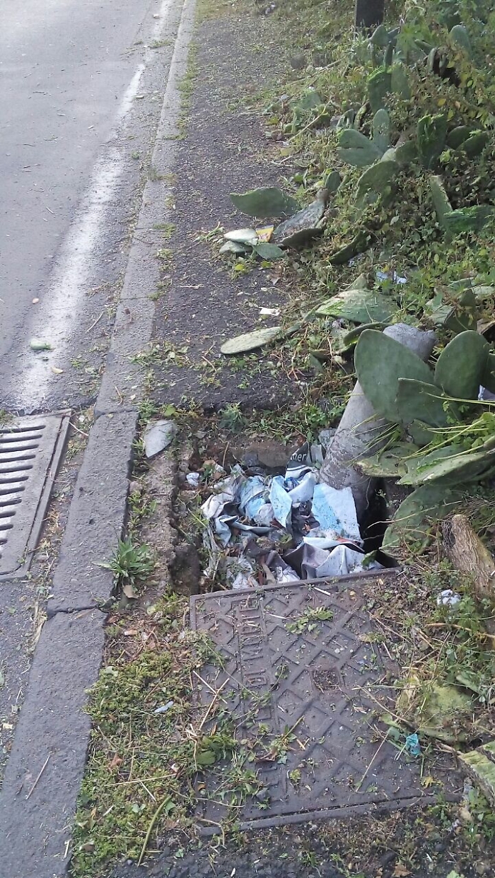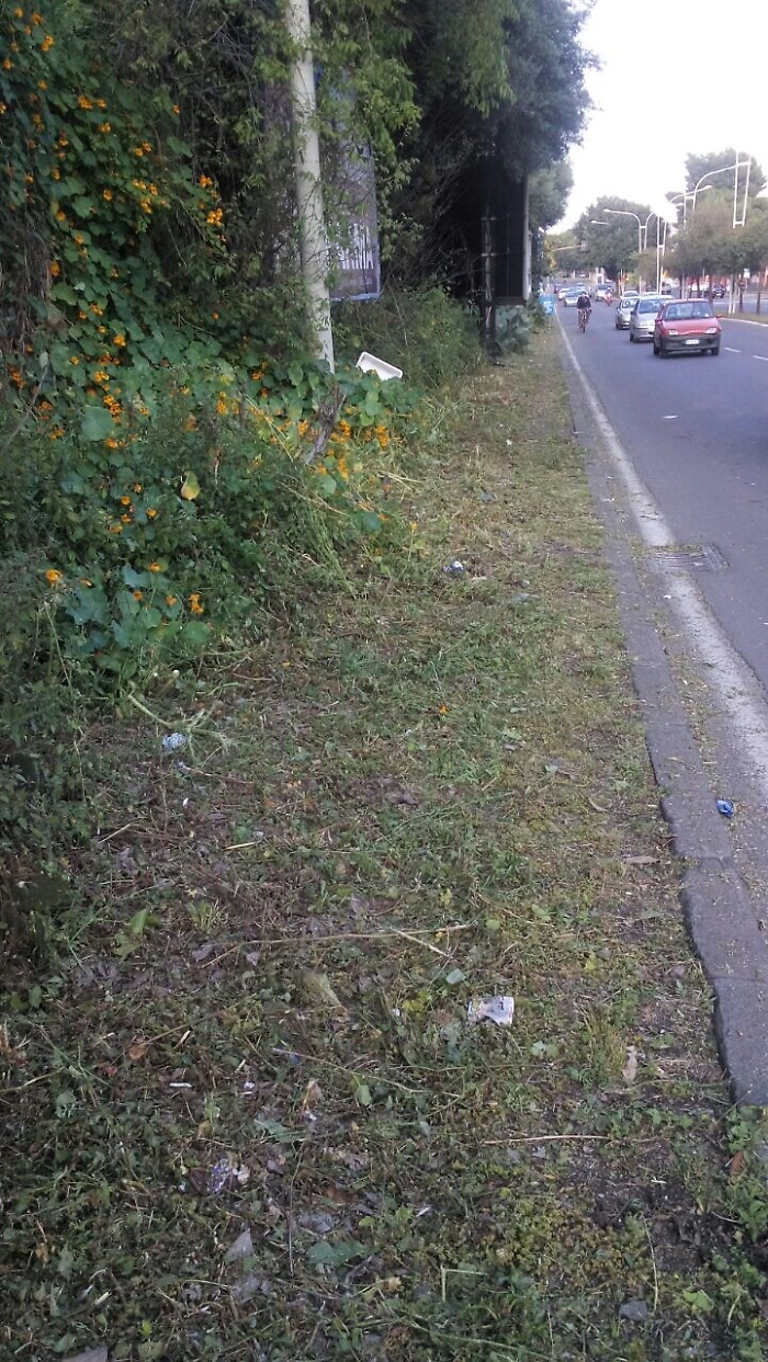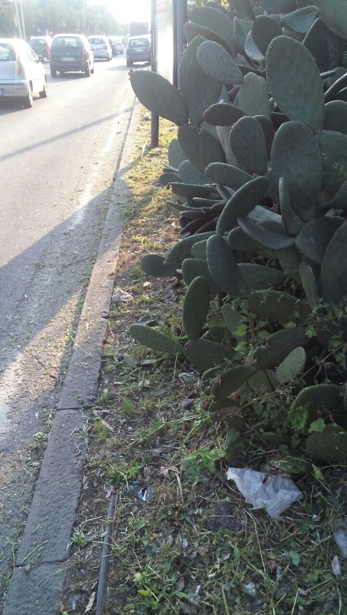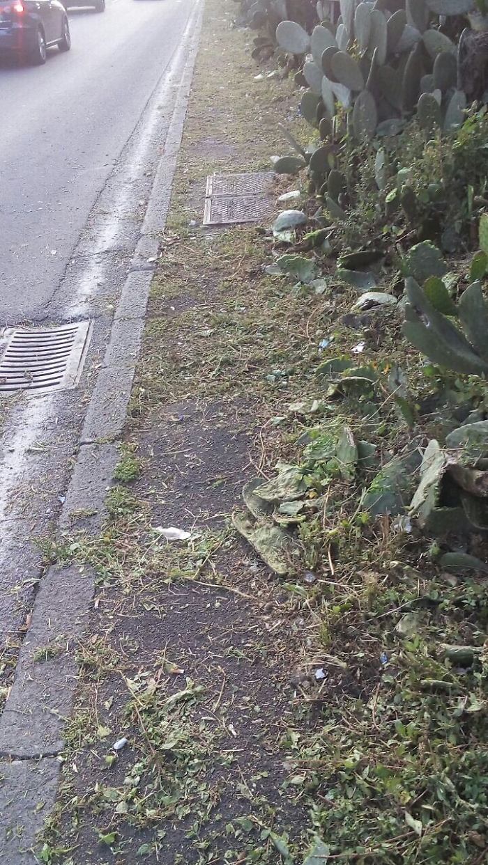 Catania - Grazie alla mia segnalazione , qualcosa e' stata fatta ! Ma non crediamo che decespugliando solamente risolviamo i problemi. Il marciapiede deve essere '"mattonellato" per evitare che le erbacce ricrescano. Tutto il materiale e' rimasto li'! ....Soprattutto in alcuni tratti come si puo' vedere i ficodindia arrivano quasi alla fine del marciapiede e per aggirare l' ostacolo di un cartellone della pubblicita' del negozio adiacente bisogna "scendere" in strada !