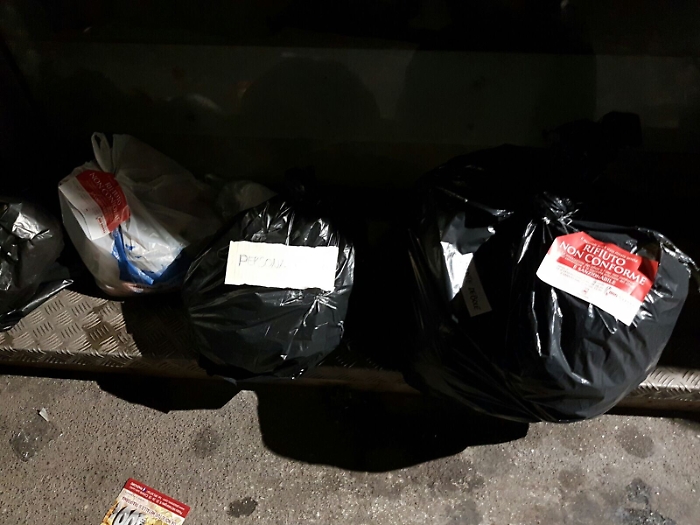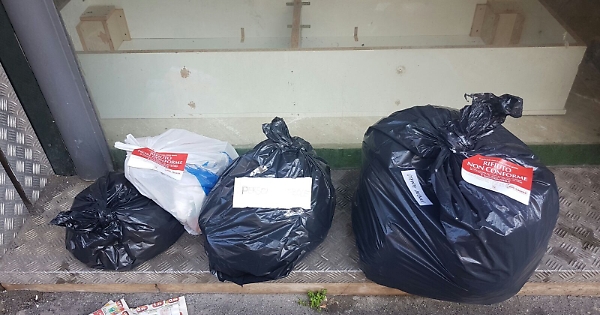 Da giorni i rifiuti indifferenziati "utenti deboli" non vengono raccolti in via Firenze, queste foto mostrano i sacchetti all'indomani del giorno previsto (giovedì), ieri notte ancora questa mattina... sentito il servizio per sollecitare, la risposta surreale è stata «è cambiato l'operatore e non sapeva che doveva raccoglierla invece di mettere l'avviso»... la promessa era che sarebbero ripassati per prendere i sacchetti, proprio incompetenti e inaffidabili! Marco Romano.