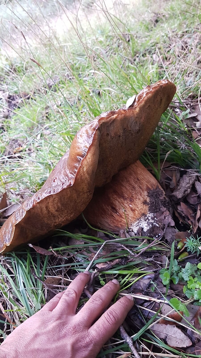 Queste sono le foto del fungo che ho trovato alle pendici dell'Etna. Saranno state le 8.30 del mattino, mi trovavo in un bosco di leccio a Zafferana Etnea, quando all'improvviso da lontano ho avvistato questo mostro! Dapprima mi sembrava un tronco marcio, ma man mano che mi avvicinavo capivo che si trattava di un porcino della specie Boletus Aereus di quelli che se ne trovano una volta sola nella vita.