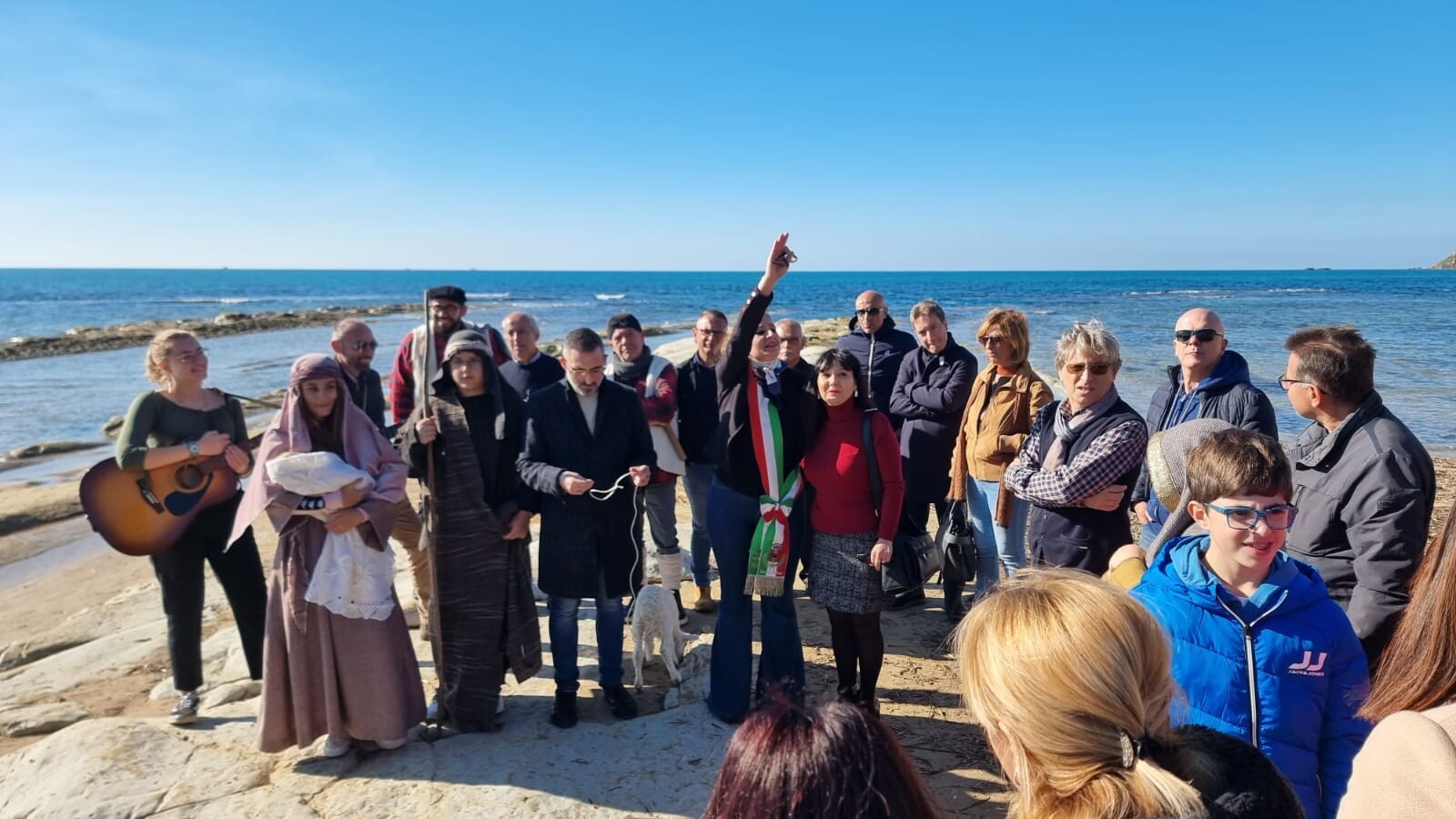 Alla Scala dei Turchi, in territorio di Realmonte, si è svolta la rievocazione della Natività. Un presepe vivente che viene riproposto ogni anno lungo la magnifica scalinata naturale di marna bianca, scolpita dal mare e dal vento. Oltre ai protagonisti del presepe, Maria, Giuseppe e Gesù Bambino, i pastori, i re Magi e gli zampognari c'erano anche delle pecorelle e diversi oggetti del mondo contadino dell’Ottocento e del secolo scorso e altri d’uso comune di quel tempo. Durante la presentazione sono stati intonati i più celebri brani natalizi. Era presente la sindaca di Realmonte, Sabrina Lattuca.