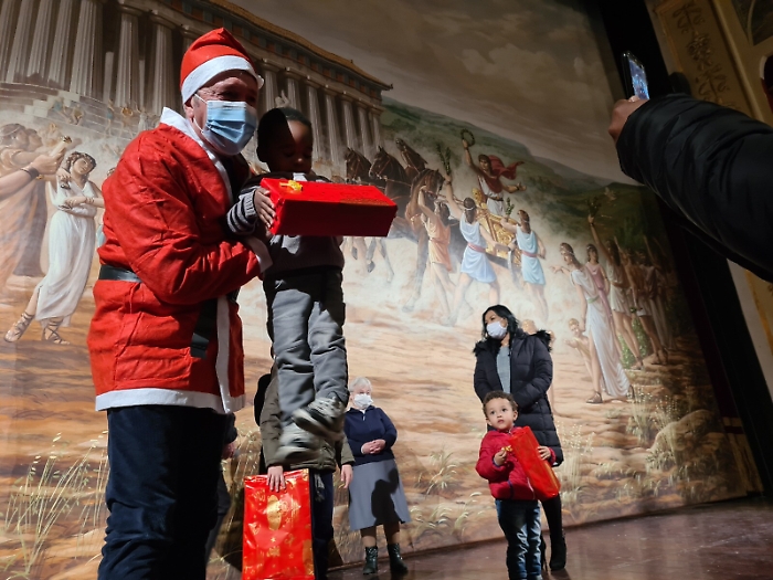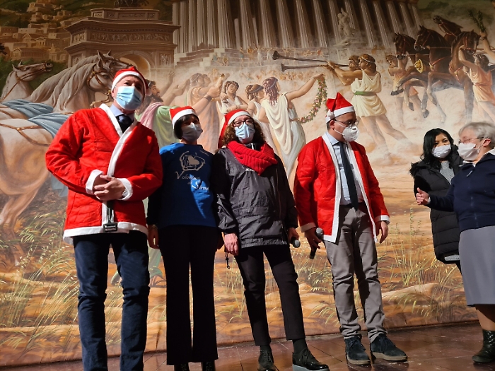 Il sindaco di Agrigento Franco Miccichè e l’assessore Marco Vullo si sono vestiti di Babbo Natale questo pomeriggio al teatro Pirandello, per partecipare a una iniziativa di solidarietà. Una cittadina di Agrigento, Margarita Lanzini, ha infatti deciso di donare dei giochini ai bambini più bisognosi e si è rivolta all’assessore Vullo per distribuirli. L’assessore ha quindi chiamato le associazioni di volontariato e sul palcoscenico del teatro ha fatto consegnare i giochini alle associazioni che hanno aderito. Qualche bambino presente ha avuto un anticipo del regalo. Ma la maggior parte dei doni verrà distribuita nei prossimi giorni.