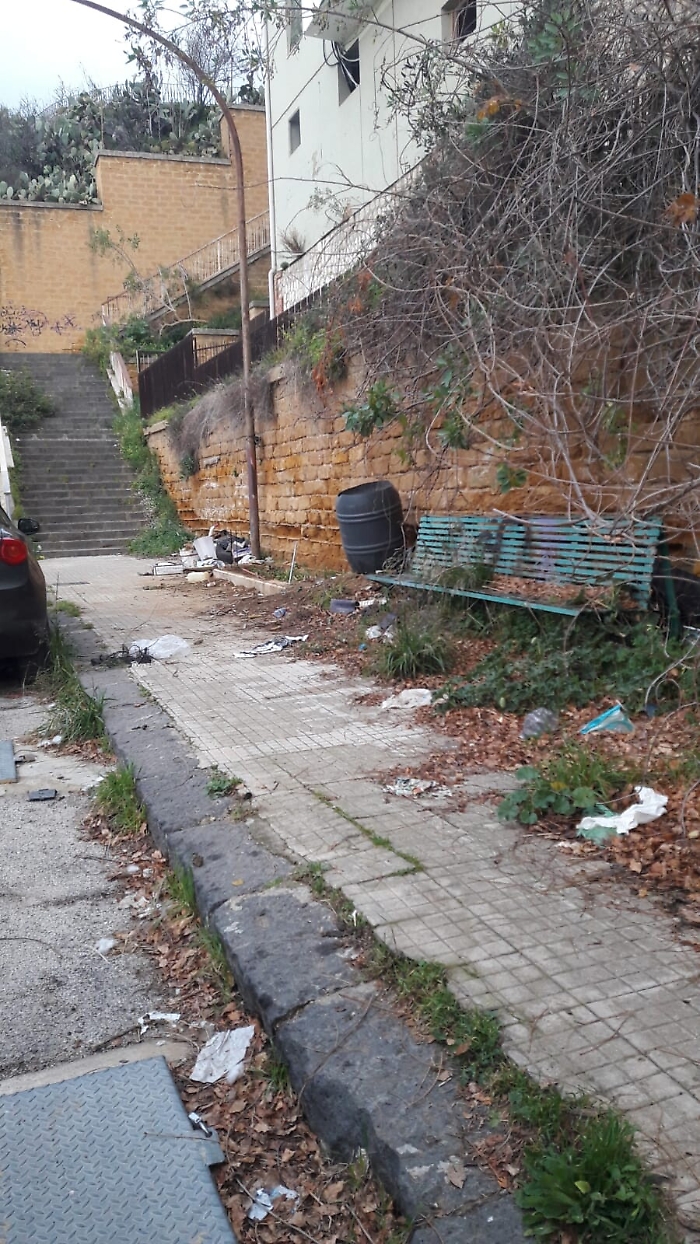 Via Esseneto, una zona centralissima di Agrigento, nelle vicinanze di scuole e uffici. Eppure c’è chi utilizza la strada come deposito – per nulla provvisorio ma pressoché a tempo indeterminato – per assi di legno, oggetti e attrezzi. Come purtroppo accade in altre parti della nostra città i netturbini prima si limitavano a svuotare i cassonetti della spazzatura ora a svuotare i mastelli della differenziata. Il resto rimane dove è sempre stato: appoggiato al muro di sostegno. Diversi residenti – dicono – hanno segnalato la situazione al Comune ma fino ad ora non è stato adottato alcun provvedimento. E noi rigiriamo la richiesta a chi di competenza.